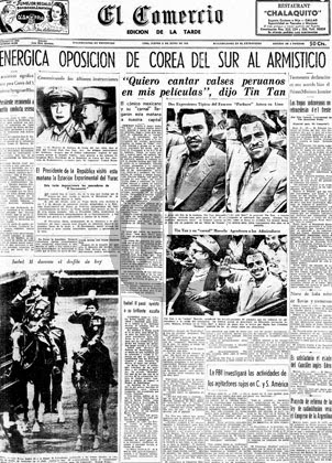 Portada del periódico El Comercio que anuncia el arribo de Tin Tan en 1953. (Foto: Archivo Histórico El Comercio)