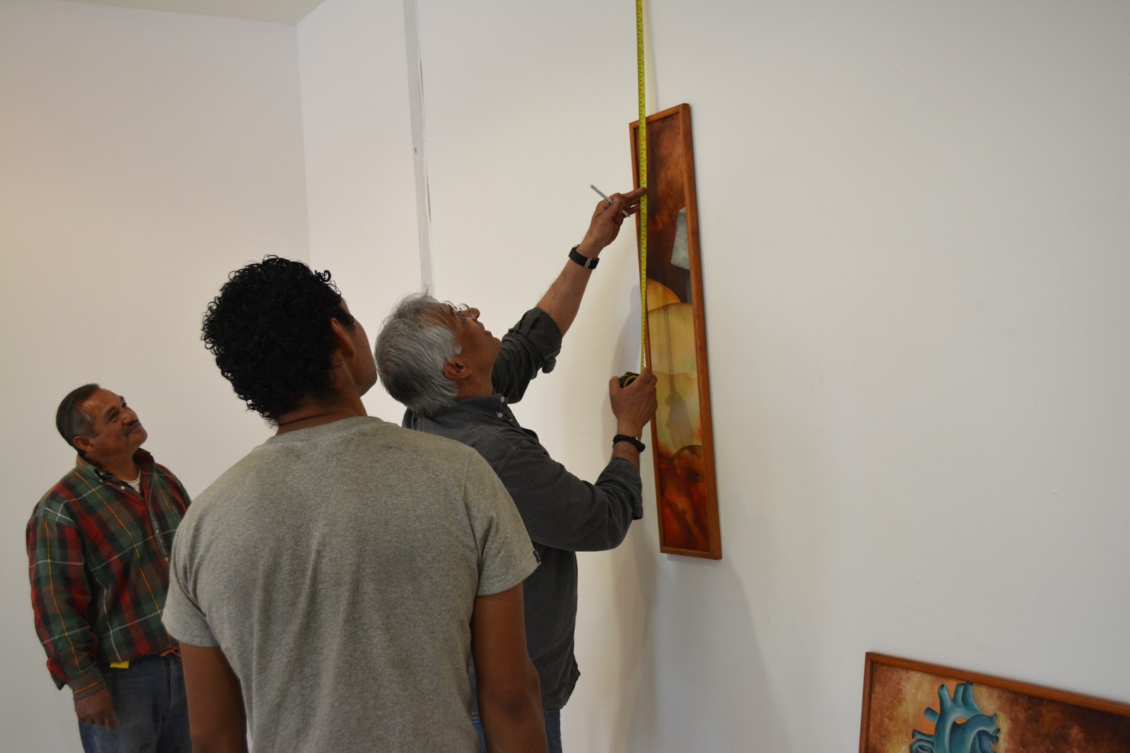 C iudad Juárez, Chihuahua. 3 de marzo de 2016. (RanchoNEWS).- El ingeniero Mario Esnayra trabajan en el montaje de la Exposición Homenaje a Adriana Peña que se inaugura hoy a las 7:00 P.M. en la Sala de usos Múltiples del Centro Cultural Paso del Norte.