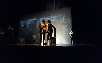 La actuación de la compañía fue impecable. La iluminación muy profesional, lo mismo que el vestuario y el maquillaje; la escenografía muy inteligentemente resuelta para una gira trascontinental.